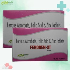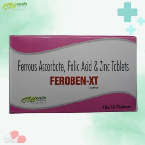 FEROBEN XT-Tablet is an iron and folic acid supplement designed to treat and prevent iron deficiency anemia, support red blood cell formation, and promote overall health.
